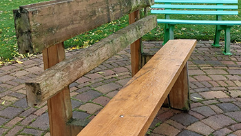Nach 5 Jahren draußen bei Wind und Wetter wurden die morschen Sitze der Bänke erneuert.